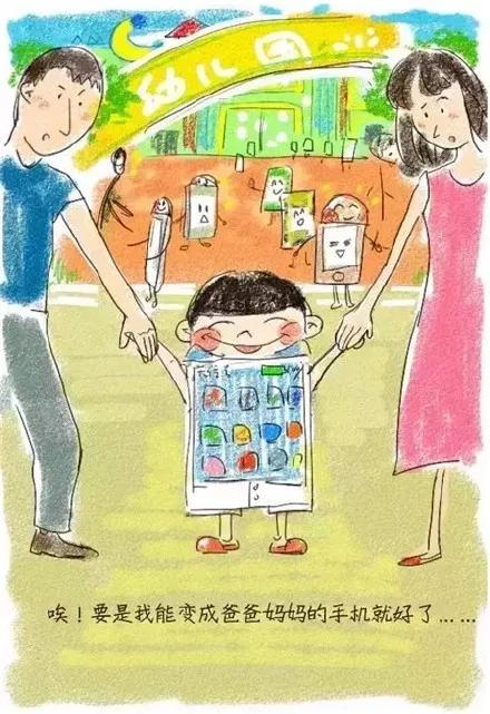 妈妈在忙工作,爸爸在打电话,孩子只是从一个地方换到另一个地方,依然缺少与父母心灵上的交流。