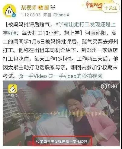 今年1月,河南沁阳,正读高二的闫同学,被妈妈批评后,赌气买票去郑州打工。