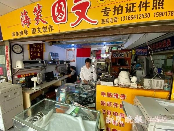来自安徽的桂九枝和丈夫的海笑图文社就夹在其中。妻子负责文印,丈夫修理家电,渐渐在街坊邻居中做出了口碑。